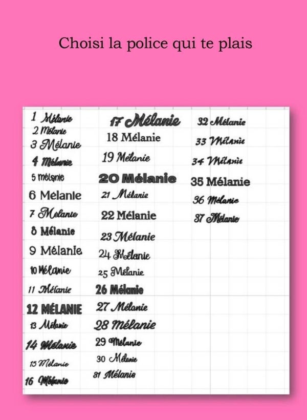Choisissez l'écriture, la couleur de l'écriture et l'ensemble qui vous plaît le plus.