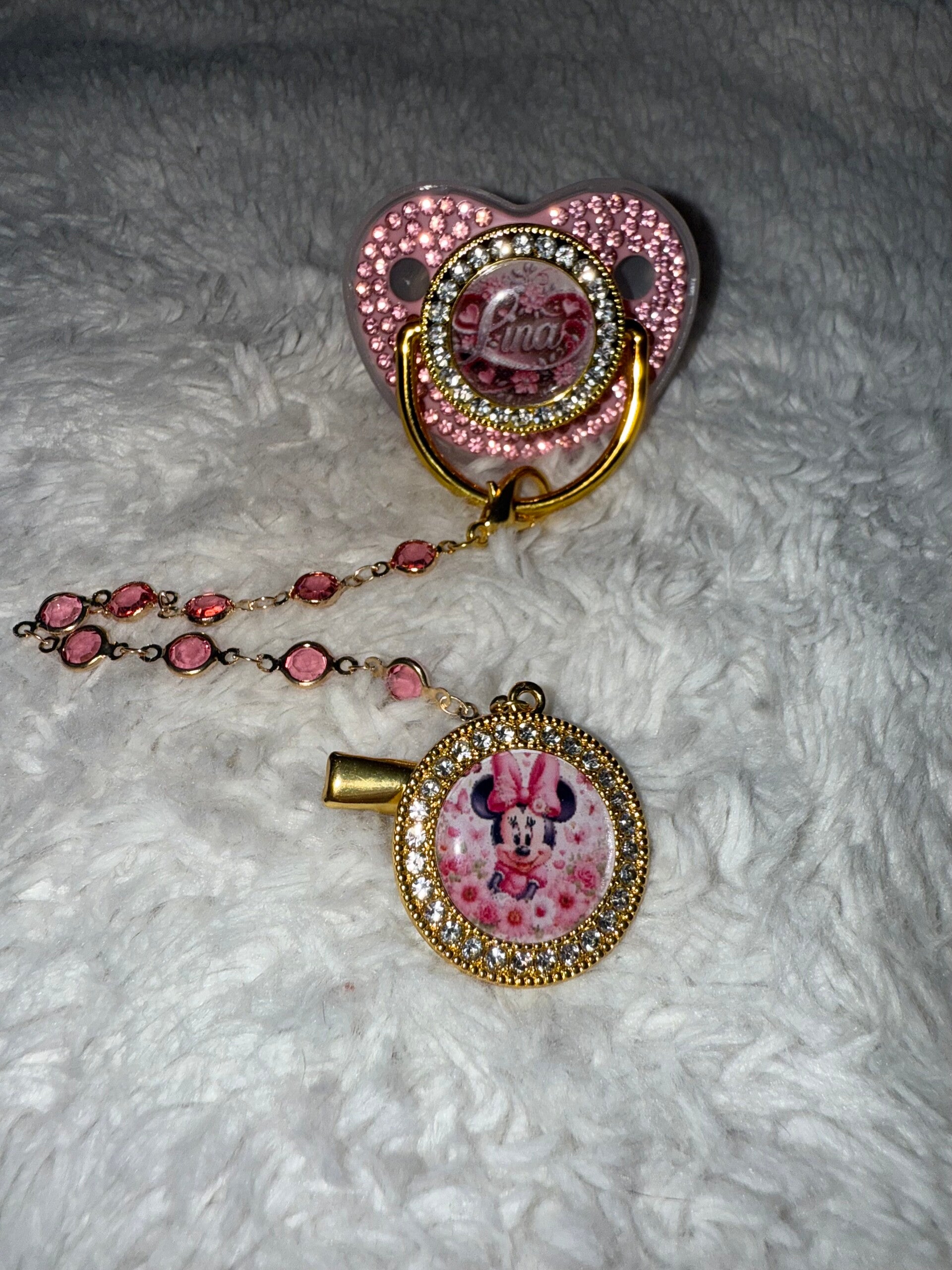 Offrez un cadeau unique à votre bébé ou à un nouveau-né avec cette ensemble tétine et accroche tétine élégante.