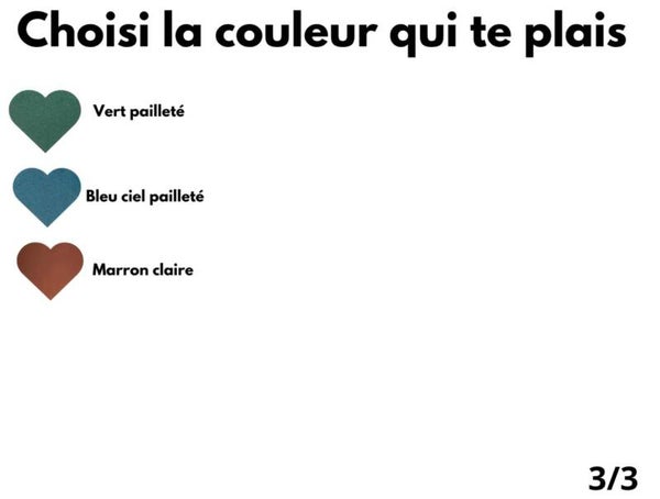Je vous laisse choisir l'écriture et la couleur de celle-ci afin de rendre votre création unique.
